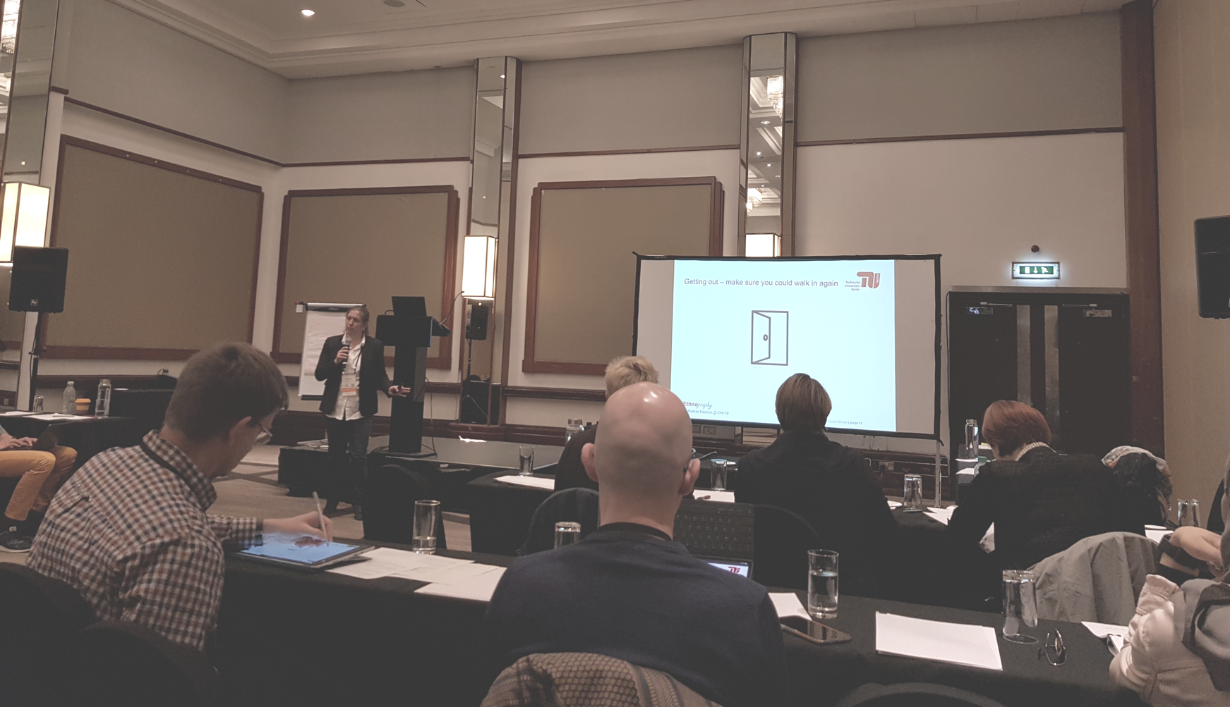 In between the conference, I participated in a one-day course for ethnographic methods in HCI. Frauke Möhrike from the TU Berlin did a great workshop with lots of hands-on exercises and critical reviews of what we did. Especially the observation and interview parts were very interesting. I already had a base knowledge due to my studies in psychology and my job but learned a great deal concerning the attitude as an observer/interviewer, and that subjectivity is not that much of a big issue if you are aware of it and try to estimate how much it biased your insights. Furthermore, I learned that trust in such activities is a crucial topic that should not be underestimated when doing research with a specific user group. It’s the ground for a good ethnographic study. All in all, I was very delighted with having participated in this course.