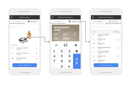 Die Mobile Store App ermöglicht es Detailhändlern in wenigen Schritten Produkte nachzubestellen. Dazu scannen Sie den Barcode eines Produkts oder der dazugehörigen Etikette und geben die gewünschte Menge ein. Schon ist die Bestellung erfasst.
