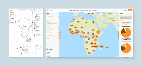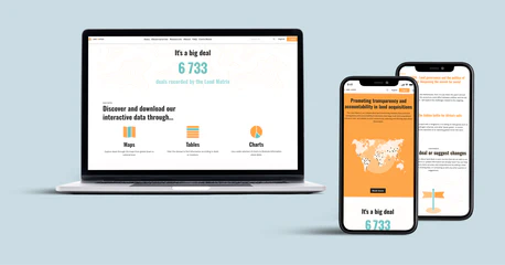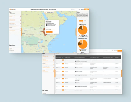 we are cube³ hat das User Interface der LandMatrix Datenbank neu gestaltet. An Stelle des primär Daten – d.h. Tabellen-basierten – Zugangs, wurde ein neuer Karten-basierter Zugang implementiert. Gleichzeitig werden die ausgewählten Daten in dynamischen Infografiken visualisiert.